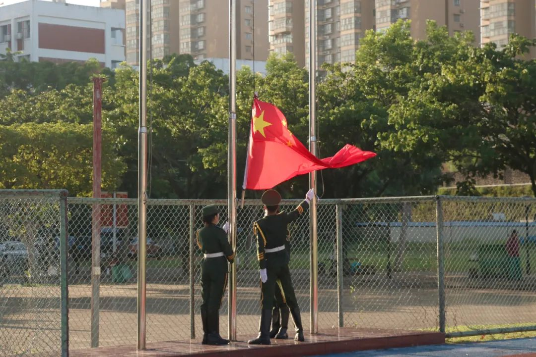 上午7点30分,五星红旗伴随着雄壮的国歌冉冉升起,全体新生队列整齐,齐唱中华人民共和国国歌。