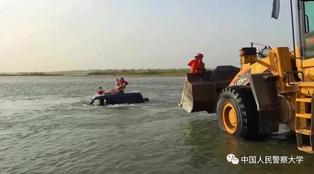 到场后发现,被困人员距离河岸20米左右,一位妇女抱着孩子坐在车顶,孩子不停地哭闹,一名男子抓着车门站在水中,被困车辆几乎被河水淹没,仅露出车顶,河水如猛兽般肆虐地冲击着车辆,威胁着被困人员的生命。