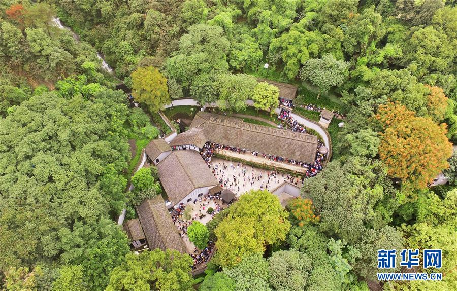 ▲游客参观重庆渣滓洞景区(2018年10月3日无人机拍摄)。