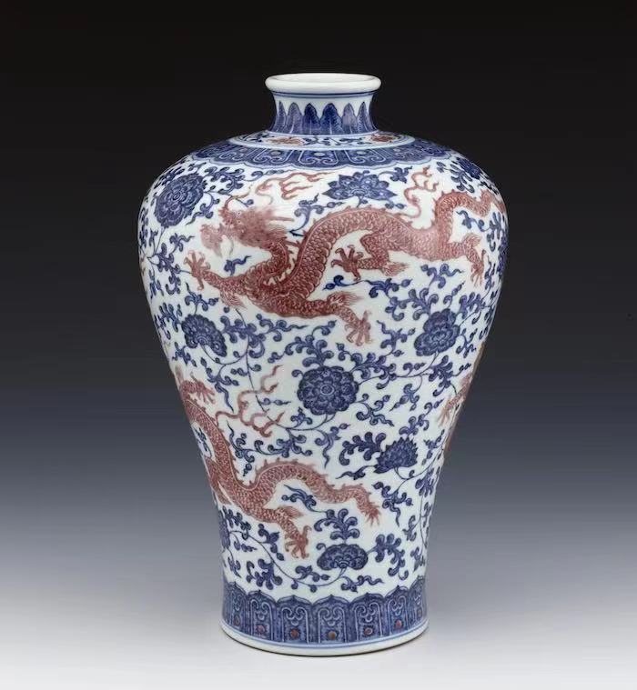 清乾隆 景德镇窑青花釉里红牡丹龙纹梅瓶