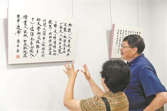 陈平原:之所以设计《大字书》这么一个特展,基于以下观念,笔墨是有感情的,书法作品是可读的。刚才已经说了,如今进书法展厅,要不格言警句,要不唐诗宋词,满眼看过去,全都是老祖宗的东西。为什么不能写点自己的东西呢?不会吟诗填词,那散文总可以吧?日常生活中的大白话,若安排妥帖,同样可以很精彩。所谓“高雅”,不是指远离现实人生,相反,有文气,有关怀,有寄托,那才是好作品——书法也不例外。