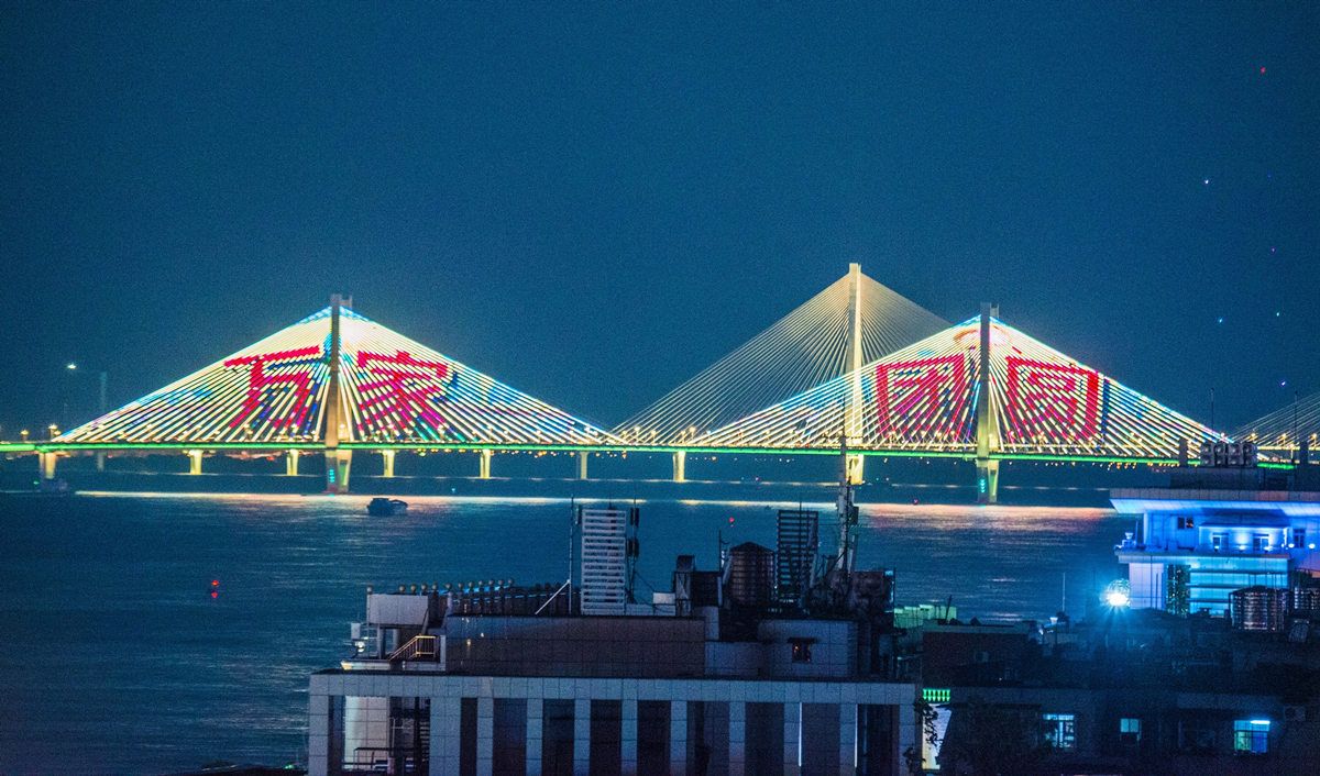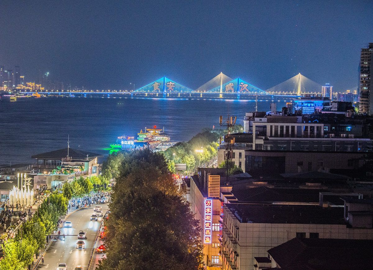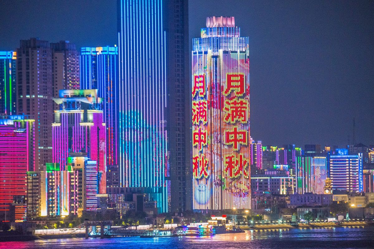2021年9月20日,中秋节期间,武汉长江四岸开启灯光秀。