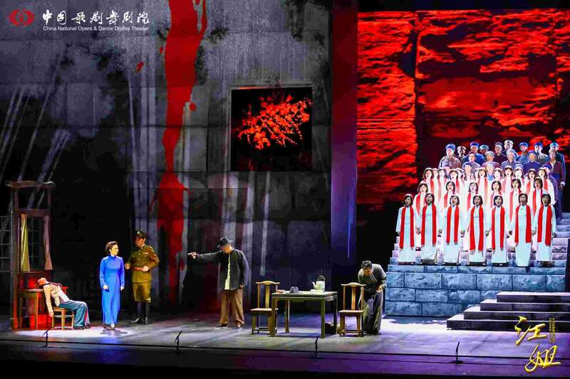 在整个演出的高潮部分,《红梅赞》的歌声响起,红梅花从石墙中的裂缝中缓缓绽放,仿佛革命者坚定的信仰冲破封锁,迎风绽放。这样的设计既推动了情节,同时也是全剧主题内涵在视觉上的外化。今年8月,歌剧《江姐》(2021版)在北京天桥艺术中心上演。当经典的唱段在全新设计的舞台上响起,观众席响起经久不息的掌声。