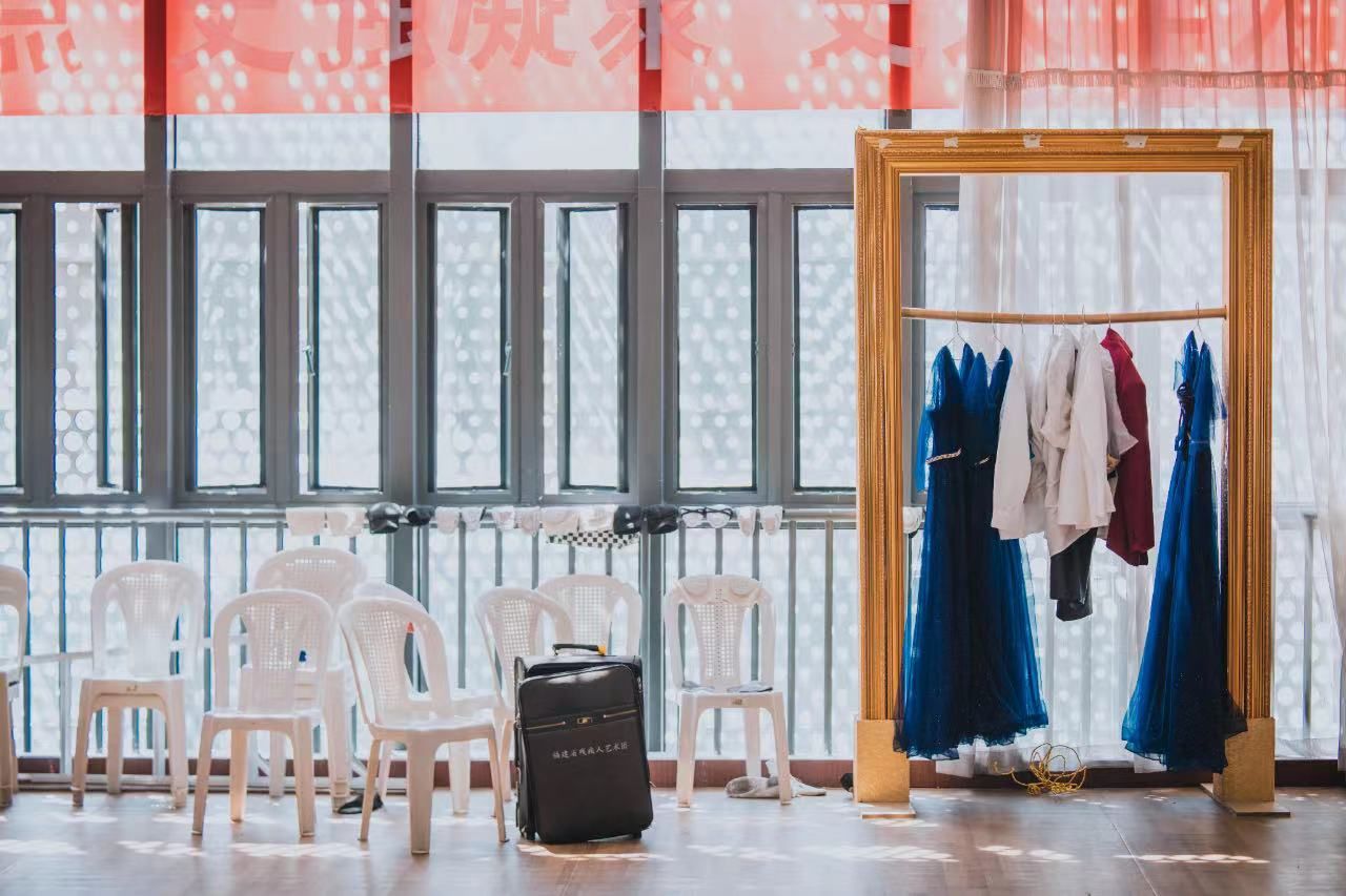 9月12日是看到组合排练的日子。如果不是福建省内突发的新冠肺炎疫情,他们本将在9月18日举行的福建省音乐舞蹈节汇报展演中登台。这天,李燕冰的状态比平时兴奋了许多,排练过程中,她不时将右手举到面前来听清自己的声音。