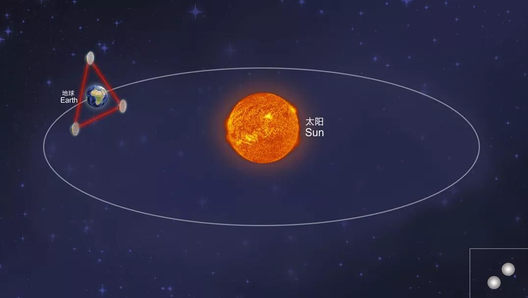 天琴计划的基本方案是:于2035年前后,在约10万公里高的地球轨道上,部署3颗全同卫星,构成边长约为17万公里的等边三角形编队,建成空间引力波探测天文台,开展空间基础科学前沿研究。