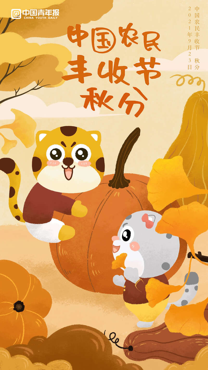 今日秋分,“分”即为“平分”,不仅指在这一天昼夜平分,还有平分了秋季的含义。今日过后,太阳光直射位置向南半球移动,北半球昼短夜长,昼夜温差加大,气温降低的速度也明显加快。俗语称:“一场秋雨一场寒”。小伙伴们要记得及时添减衣物,以防感冒。与此同时,今天我们也迎来了一年一度的“中国农民丰收节”,春耕夏耘的辛苦忙碌终于在秋天得到收获,快来和青小豹一起感受秋收的快乐吧!