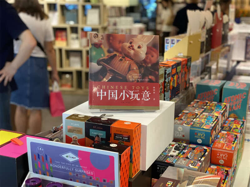 上海香港三联书店摆放的《中国小玩意》新书和陈国泰的玩具们。