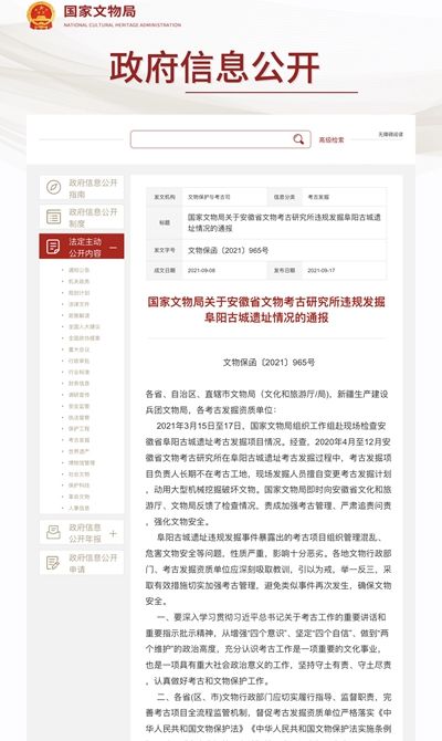 考古发掘项目负责人长期不在考古工地、现场发掘人员擅自变更考古发掘计划、动用大型机械挖掘破坏文物……近日,国家文物局在官网发布《关于安徽省文物考古研究所违规发掘阜阳古城遗址情况的通报》(以下简称“《通报》”),对安徽省文物考古研究所相关发掘工作中出现的问题提出严肃批评。