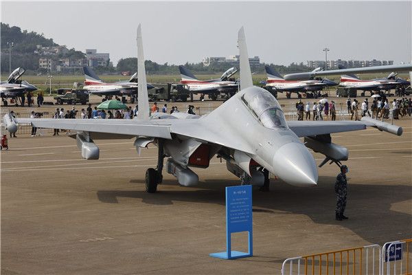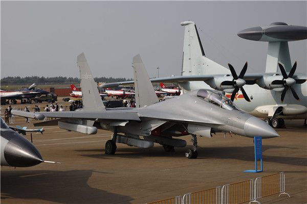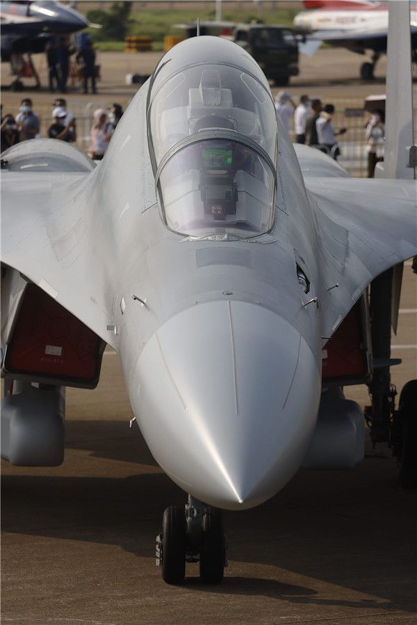 2021年9月28日,广东珠海,2021珠海航展开幕前,中国空军歼-16D战机、歼-10C战机参加静态展示。