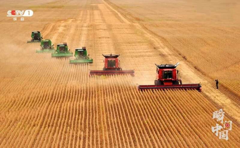 不到一周时间,祖祖辈辈都是农民的张景会开着收割机,完成了自家360多亩水稻的秋收,从“一把镰刀两条腿”到农业机械满地跑,从“靠天吃饭”到高产稳产,中国人把饭碗牢牢地端在自己的手中!