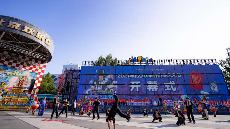 中国青年报客户端北京10月1日电(中青报·中青网记者 张曼玉)今天,北京欢乐谷街头艺术节启幕。为期7天的街头艺术节以“欢乐,当燃在街头”为口号,集结了街舞、电音、戏法、快闪表演、欢庆歌舞等形式。