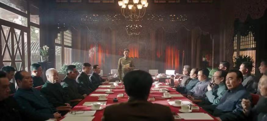 到了北京,镜头切出来的是沉闷和沉默。只有唐国强饰演的主席在发言,其他人都在沉默。