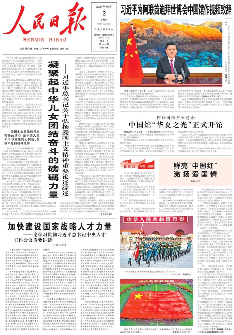 “天行健,君子以自强不息。”迈上全面建设社会主义现代化国家的壮阔征程,瞻望中华民族伟大复兴的光明前景,我们无比坚定、无比自信。团结就是力量,团结越紧力量越大。只要全党全国各族人民、海内外中华儿女同心同德、群策群力,就能形成万众一心、无坚不摧的磅礴力量,就能战胜一切强大敌人、一切艰难险阻。让我们更加紧密地团结在以习近平同志为核心的党中央周围,大力弘扬伟大爱国主义精神,向着全面建设社会主义现代化国家新征程,向着实现中华民族伟大复兴的中国梦,继续奋勇前进!