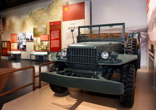 香山革命纪念馆中,《为新中国奠基——中共中央在香山》主题展览展出的中共中央迁驻香山时使用的同型吉普车(2019年9月7日摄)。新华社记者 任超 摄