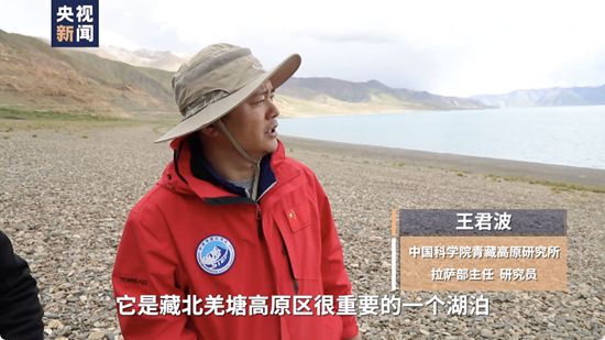 中国科学院青藏高原研究所拉萨部主任 研究员 王君波:我们现在看到这个当惹雍错,它是藏北羌塘高原区很重要的一个湖泊,我们现在可以看到的就是整个从远处到近处,这一圈一圈的一层一层的,都是当惹雍错以前高湖面时期所留下的遗迹,也就是古湖岸线。