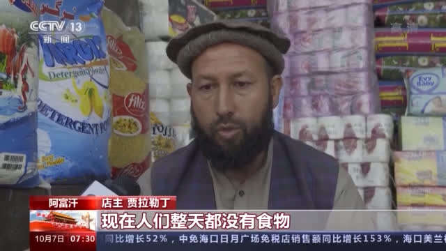 店主 贾拉勒丁:现在人们整天都没有食物,美国制裁我们,制裁的对象是阿富汗人民。