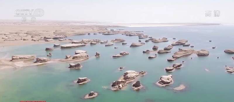 乌素特水上雅丹景区,位于青海省海西州戈壁荒漠深处。形态各异的雅丹遍布于湖水之中,普遍高约10米—20米,最高可达50米。雅丹地貌是指干燥地区的一种独特风蚀地貌,在我国一般分布在新疆、甘肃、青海等地。