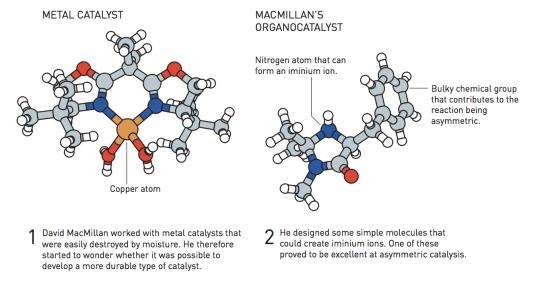 戴维·麦克米伦在哈佛大学时曾致力于利用金属改善不对称催化。这是一个吸引了大量研究人员关注的领域,但戴维·麦克米伦指出,开发的催化剂很少用于工业。他开始思考原因,并认为敏感金属的使用非常困难和昂贵。