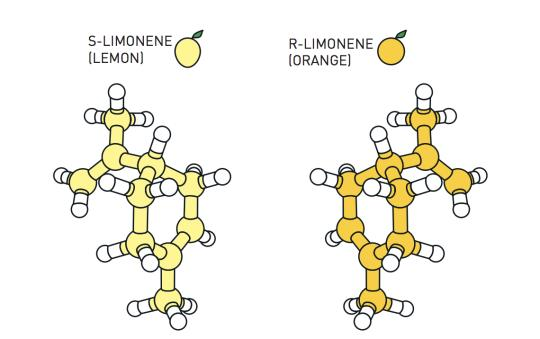 许多分子存在于两种变体中,一种是另一种的镜像。这些对身体有完全不同的影响。例如,柠檬烯分子有一种柠檬气味,而它的镜像闻起来像橙子。