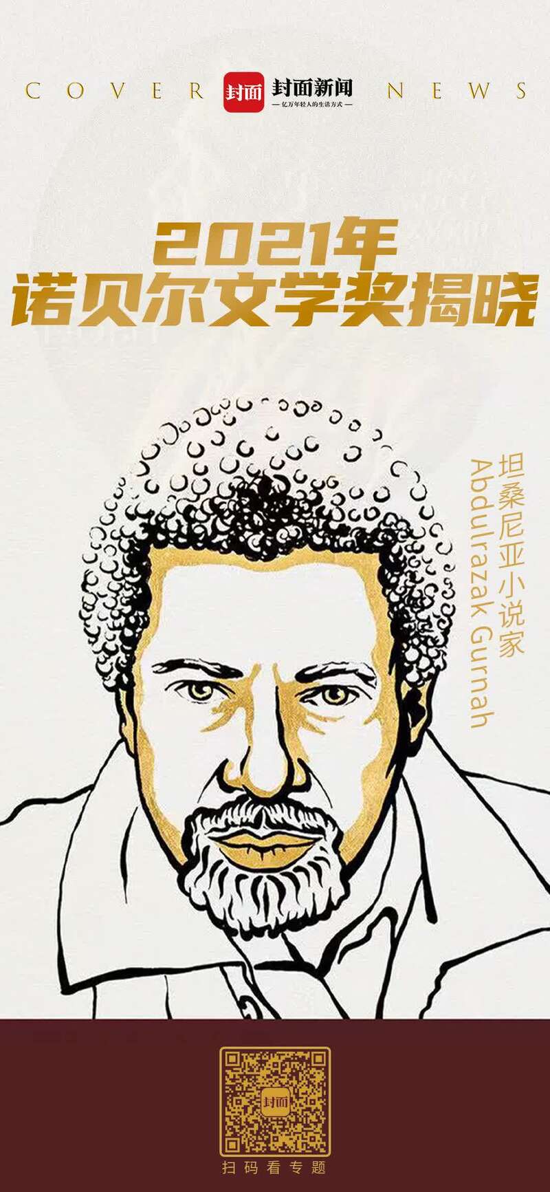 非洲裔英国移民作家阿卜杜勒拉扎克·古尔纳被授予2021年诺贝尔文学奖。