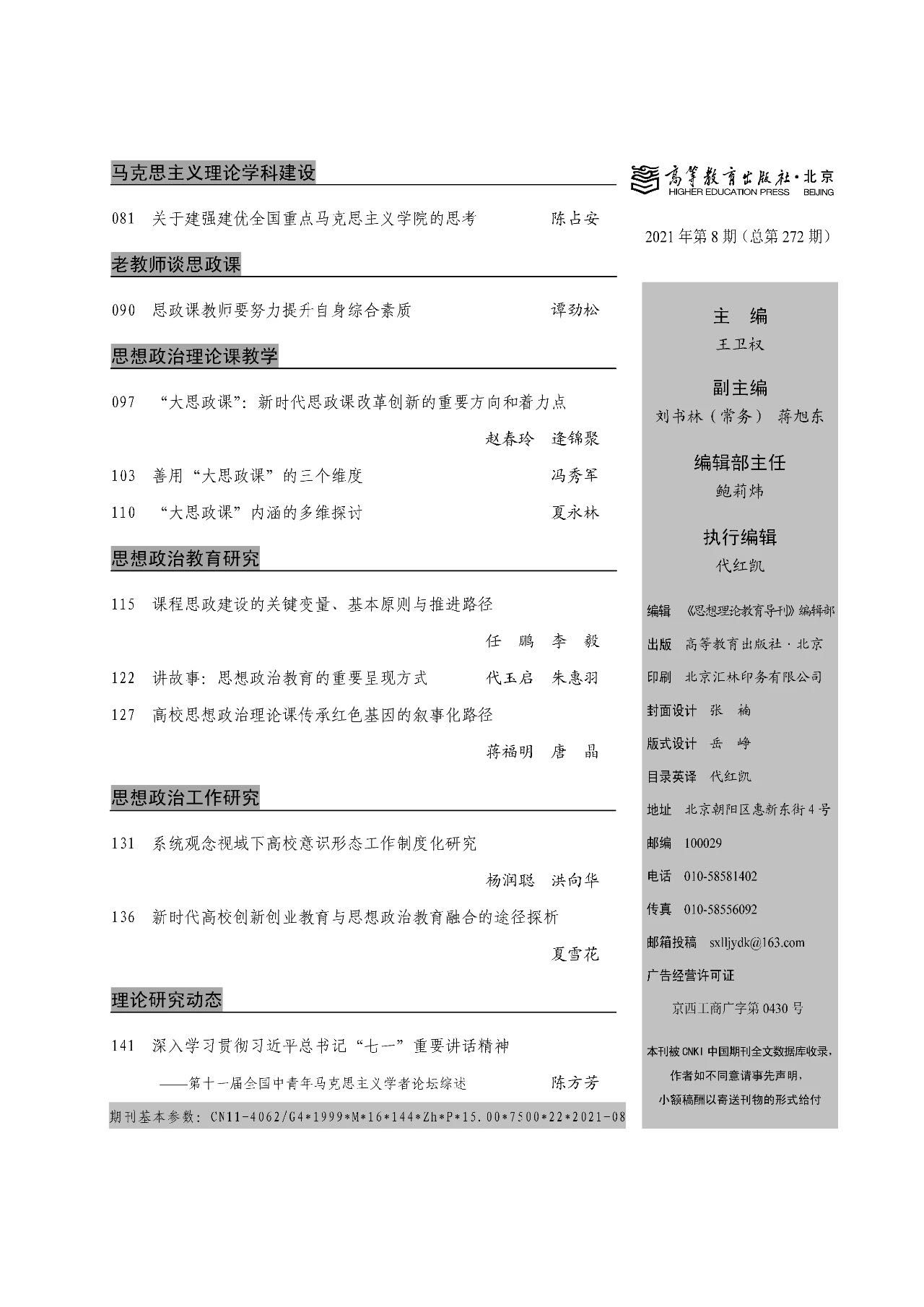 [7] 杜尚泽.“‘大思政课’我们要善用之”(微镜头·习近平总书记两会“下团组”·两会现场观察)[N].人民日报,2021-03-07(1).