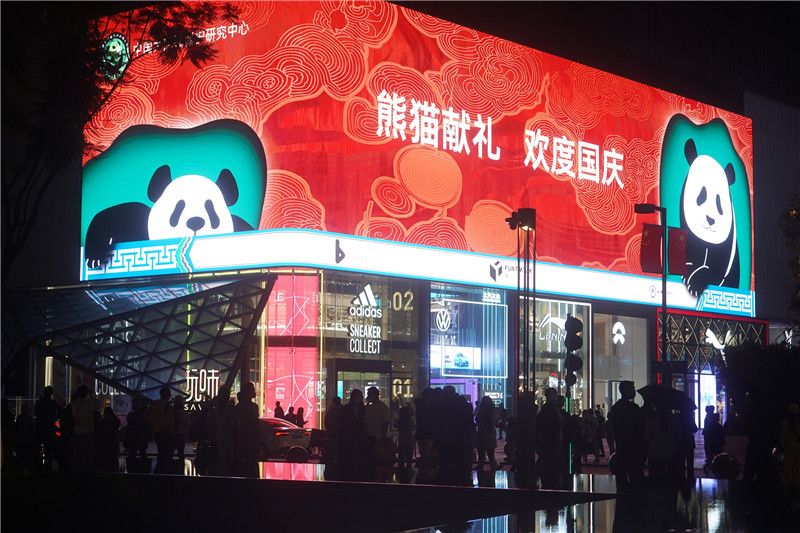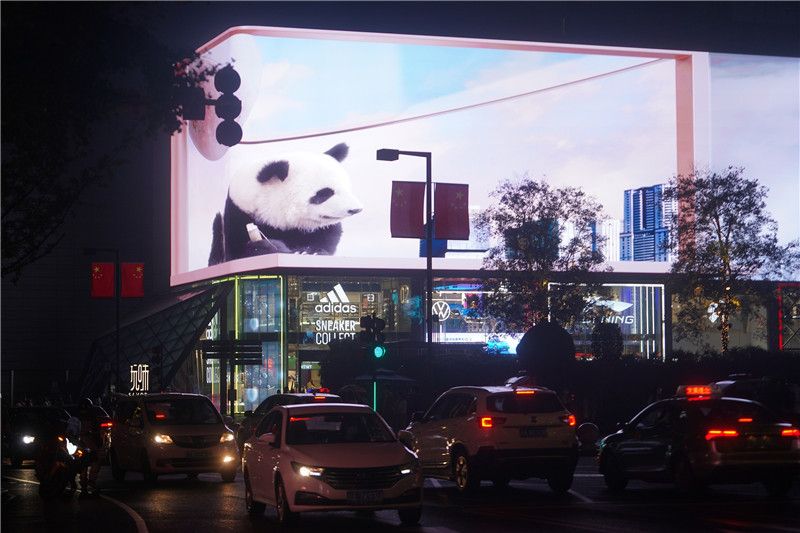 2021年10月8日,成都,全球首个巨物化裸眼3D熊猫公益视频发布。