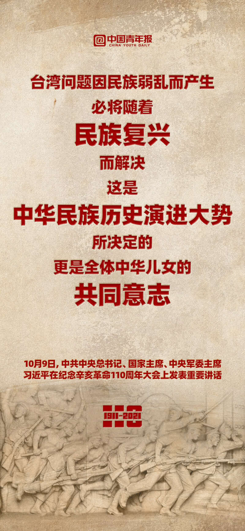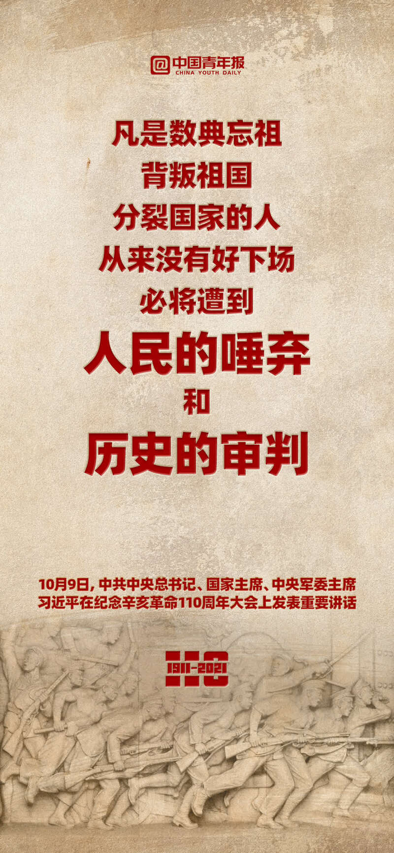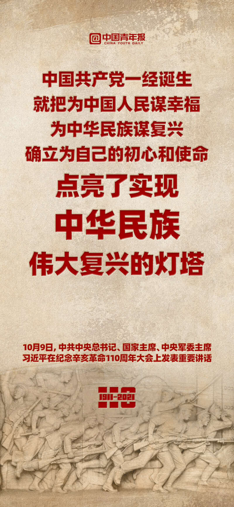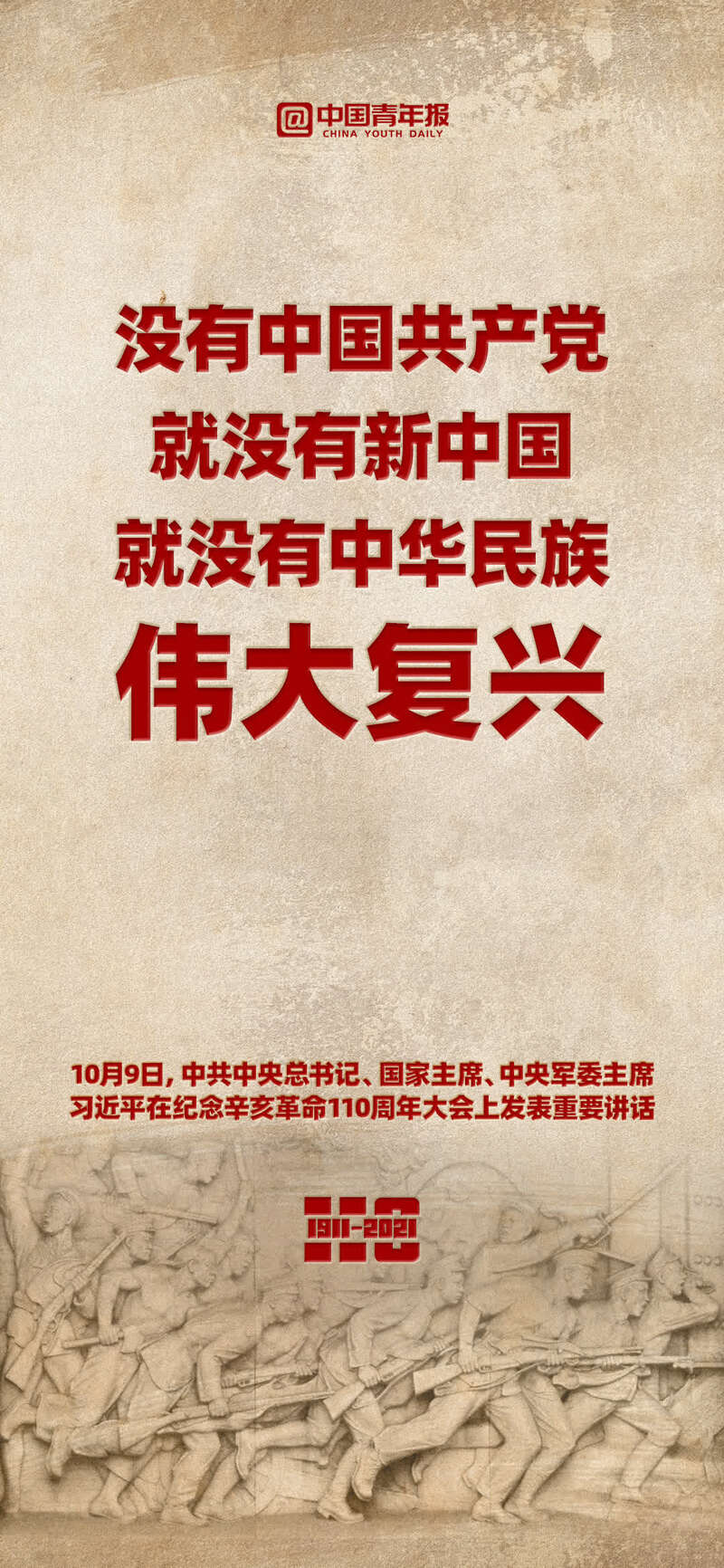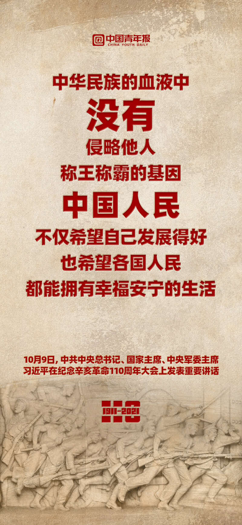 纪念辛亥革命110周年大会9日上午在北京人民大会堂隆重举行。习近平出席大会并发表重要讲话。习近平呼吁,海内外全体中华儿女更加紧密地团结起来,发扬孙中山先生等辛亥革命先驱的伟大精神,携手向着中华民族伟大复兴的目标继续奋勇前进!收藏金句,让我们为复兴伟业共同奋斗!