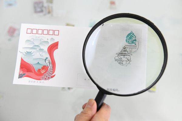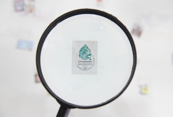 2021年10月10日,在中国邮政集团公司石家庄新乐市分公司,集邮爱好者展示即将发行的《<生物多样性公约>第十五次缔约方大会》纪念邮票。