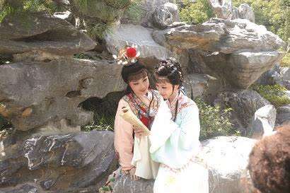 ◆图为2015年再度演出的殿堂版《红楼梦》。钱惠丽(右)、单仰萍(左)分别饰演贾宝玉和林黛玉。 (摄影:叶辰亮) (本版剧照除署名外均由上海越剧院提供)