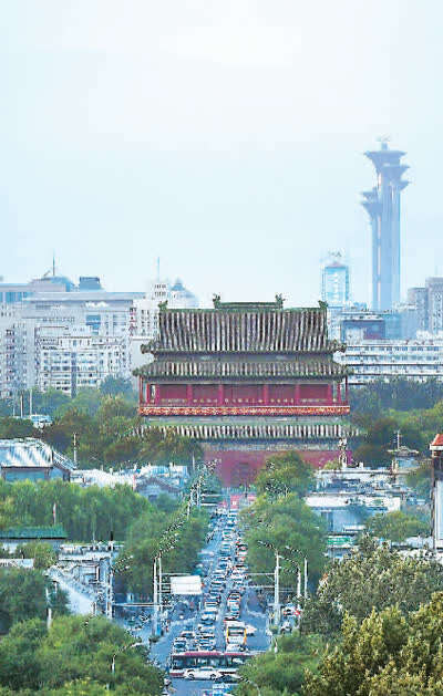 位于北京中轴线上的鼓楼。新华社记者 鞠焕宗摄