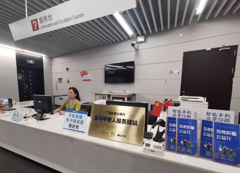 目前,广州图书馆设置了“蓝马甲老人服务驿站”,日常可提供反诈知识宣传、手机使用手册派发、老年人服务等;并且定期线下开展“助老课堂”,线上乐学平台也同步开启了“蓝马甲课程专区”,通过一系列视频教学,让老人学完回家还可以再温习。