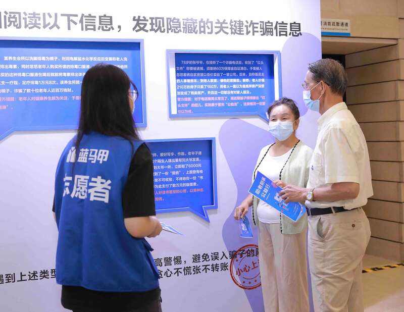 今年3月,在国家反诈中心、工信部反诈中心指导下,由各地政府部门、志愿者组织、支付宝等企业共同发起的蓝马甲行动开启。该行动主要通过进社区讲座、驻点一对一答疑、防骗展、数字体验点等形式,为老年人提供数字助老、防骗知识普及、金融安全知识讲座等公益志愿服务活动。