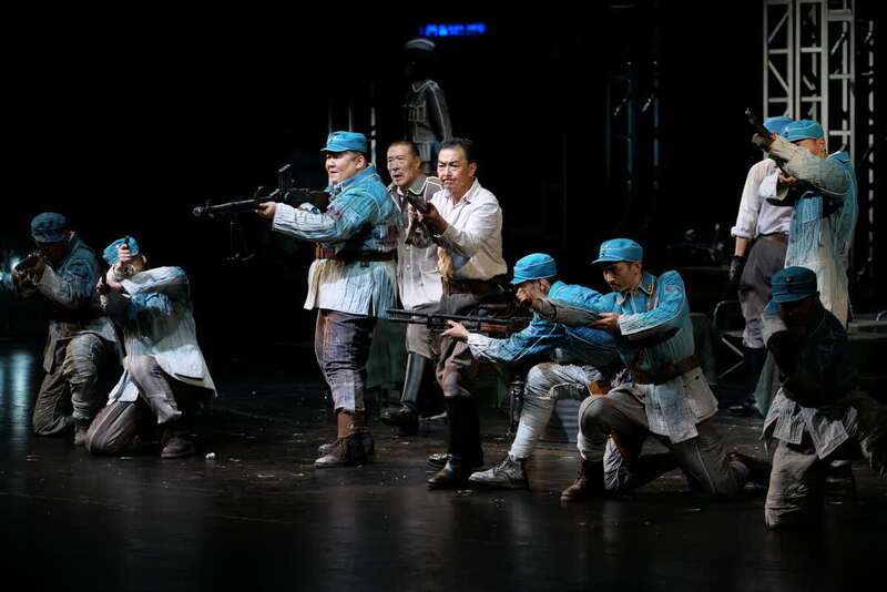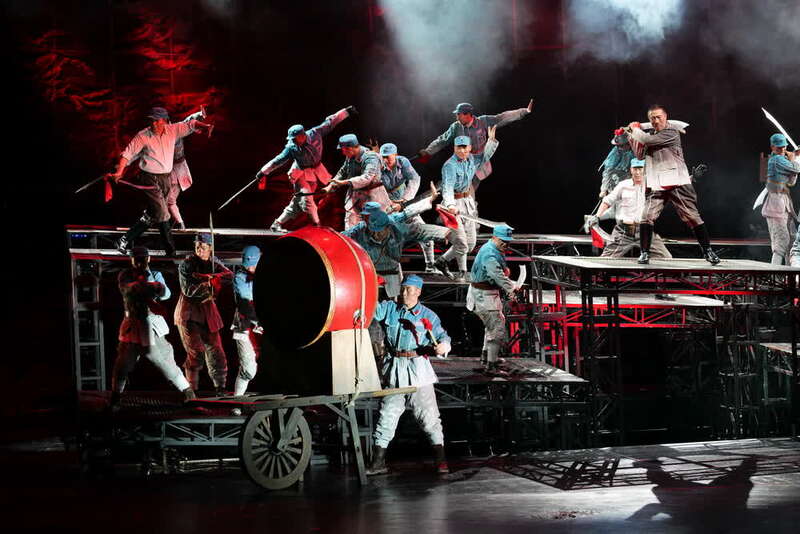 编剧李宝群告诉澎湃新闻记者,戏剧发展到今天必须有突破,有变数。“我们希望做出一部从内容到形式都有新探索的戏剧,一部有生命质感,有温度,有灵魂、有筋骨、有思想和情感力量的戏剧,一部具有史诗品格的战争大戏。”他介绍说,“我们尝试着将叙述性与戏剧性结合,将再现与表现结合,将写实与写意,诗化和象征结合,将宏大的战争场景、大激荡大裂变的时代风云与细致深入的细节刻划结合,将残酷惨烈的大生大死与温暖动人的人间感情结合。整个戏历史时空与现实时空交叉推进,人物不断往来于历史与现实之间,时空变化十分丰富,舞台极为自由灵动。我们也不再拘泥于传统的写实再现原则,众多牺牲者的亡灵,老马,乌鸦,漫天的大雪,呼号的寒风都成了舞台上活生生的生命,都参与了不寻常的历史叙说……”