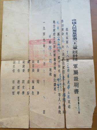 毕春艳告诉澎湃新闻,毕玉泉出生于1931年12月,1946年8月参加革命,加入中国人民解放军。毕玉泉参军后,家中曾先后收到两份解放军第二十三军军属证明书。一份于1949 年 12 月 30 日颁发,证明毕玉泉当时所属第六十八师二零四团一营二连部队;另一份在1950年3月12日颁发,记载毕玉泉时任第六十八师二零四团团部警卫员。两份证明书末尾均写明,其父母兄嫂等家属应享有革命军人家属之优待。