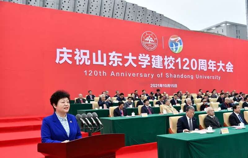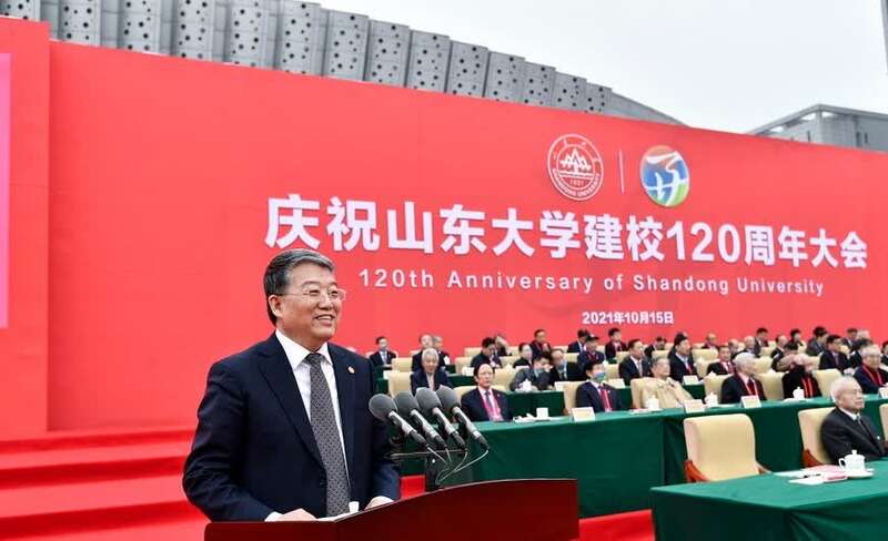 山东省委书记、省人大常委会党组书记李干杰代表山东省委、省政府,向山东大学全体师生和海内外校友表示热烈祝贺。他说,120年来,山东大学始终秉承“为天下储人才,为国家图富强”宗旨,形成了大批优势学科,创造出丰硕科研成果,涌现出众多杰出校友,为国家发展和社会进步作出积极贡献。他表示,山东省委、省政府将一如既往、全力支持山东大学,努力为学校发展创造更好条件、提供更优服务、营造更佳环境。