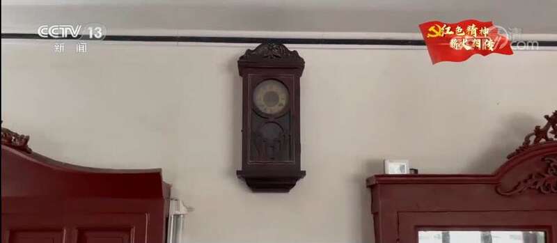 总台记者 尹平:这里是位于遵义市老城区子尹路的遵义会议会址,这栋青瓦白墙的小洋楼就是会址的1号文物。86年前,就在小洋楼的二楼,中共中央政治局召开了著名的遵义会议。现在这个会议室里的陈设就是根据与会者的回忆,基本还原了当年开会的场景,而墙上这口挂钟也是当年的实物,它见证了遵义会议的召开。
