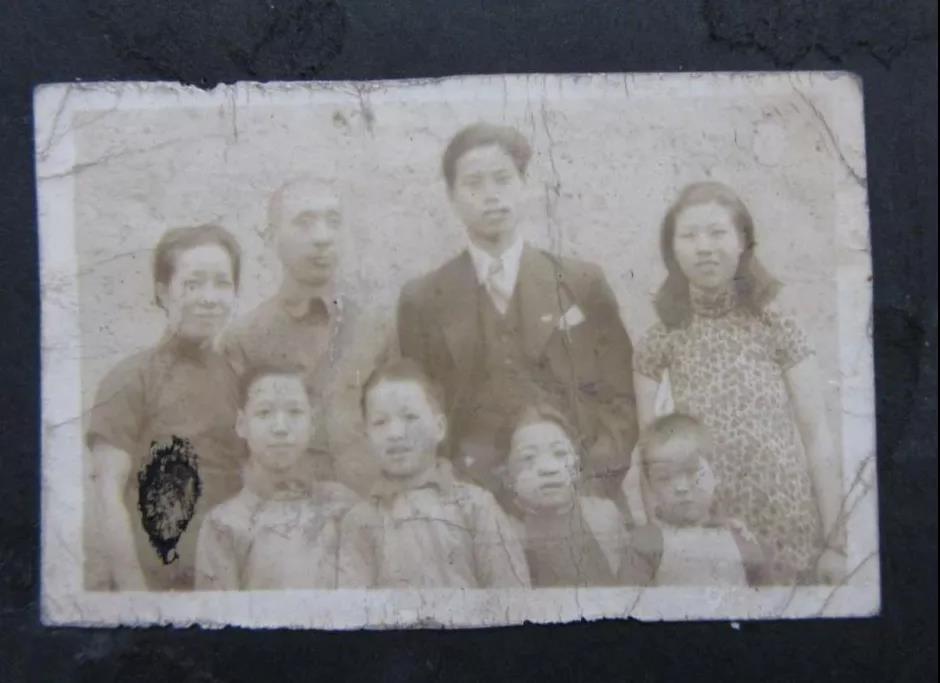 上世纪40年代,陈孔立的父母和四兄弟,以及因病住在陈家的厦大学生夫妇合影