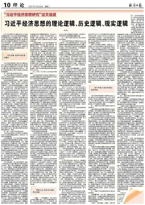 习近平经济思想是习近平新时代中国特色社会主义思想的重要组成部分,具有科学、系统的内在逻辑结构。