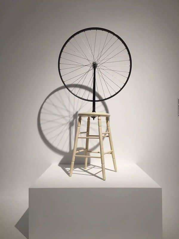 当代艺术将时间和运动引入空间的艺术,让过去的时间视觉暗示直接转变为作品的时间维度。杜尚的《现成的自行车轮》是他的第一件现成物品艺术,这个作品在时间观念上为当代艺术开启了大门。