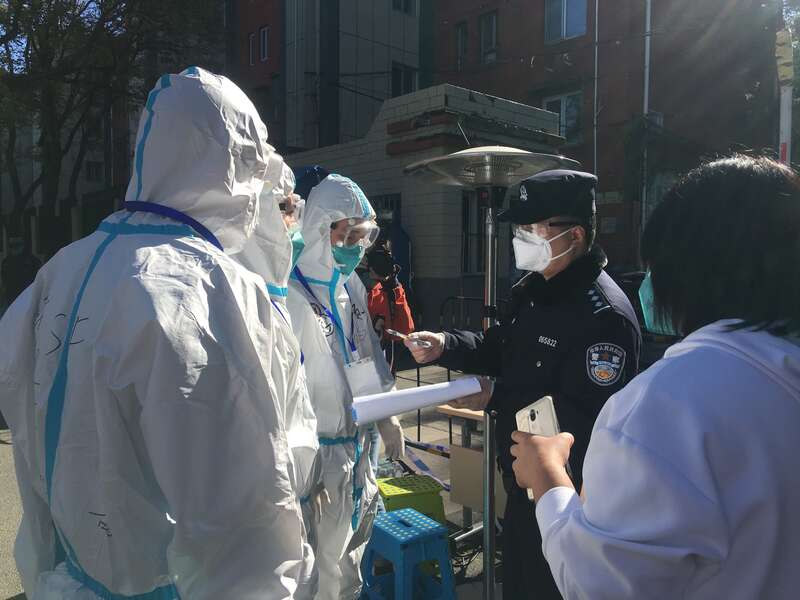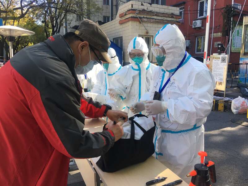 海淀区妇幼保健院党委委员、副院长王雷记得自己是24日早上6点半左右接到的卫健委的通知。他所在的妇幼保健院在半个小时之内,就与辖区内的第三方检测机构组成了一个25人的核酸检测队伍,在集结整理了耗材、物资、后勤供应之后,8点多便到达了芙蓉里社区。对于如此短的反应时间,王雷解释道:“之前卫健委组织我们进行过很多次的这种模式的演练。”
