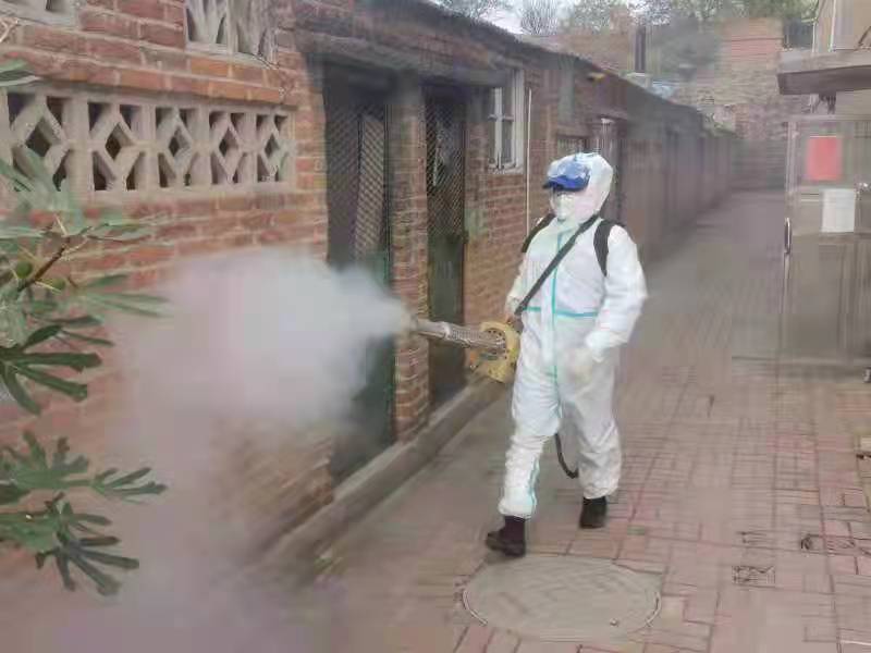 10月26日,在五莲县一中宿舍,方舟救援队、蓝天救援队等多支青年志愿者队伍积极协助疫情防控部门设点防控检测,待核酸检测任务结束后,为核酸检测点区域进行消杀作业。