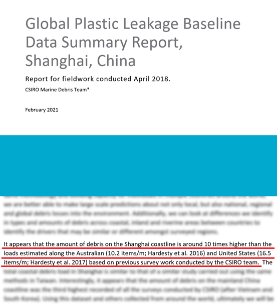 2021年2月,根据该组织提供的数据,某境外研究机构公开发表“科研文章”,声称上海海岸线的垃圾密度是澳大利亚和美国的10倍。而该组织发布的监测报告中,其检测的垃圾数量、重量密度竟然分别是官方科学监测结果的20倍和8倍。