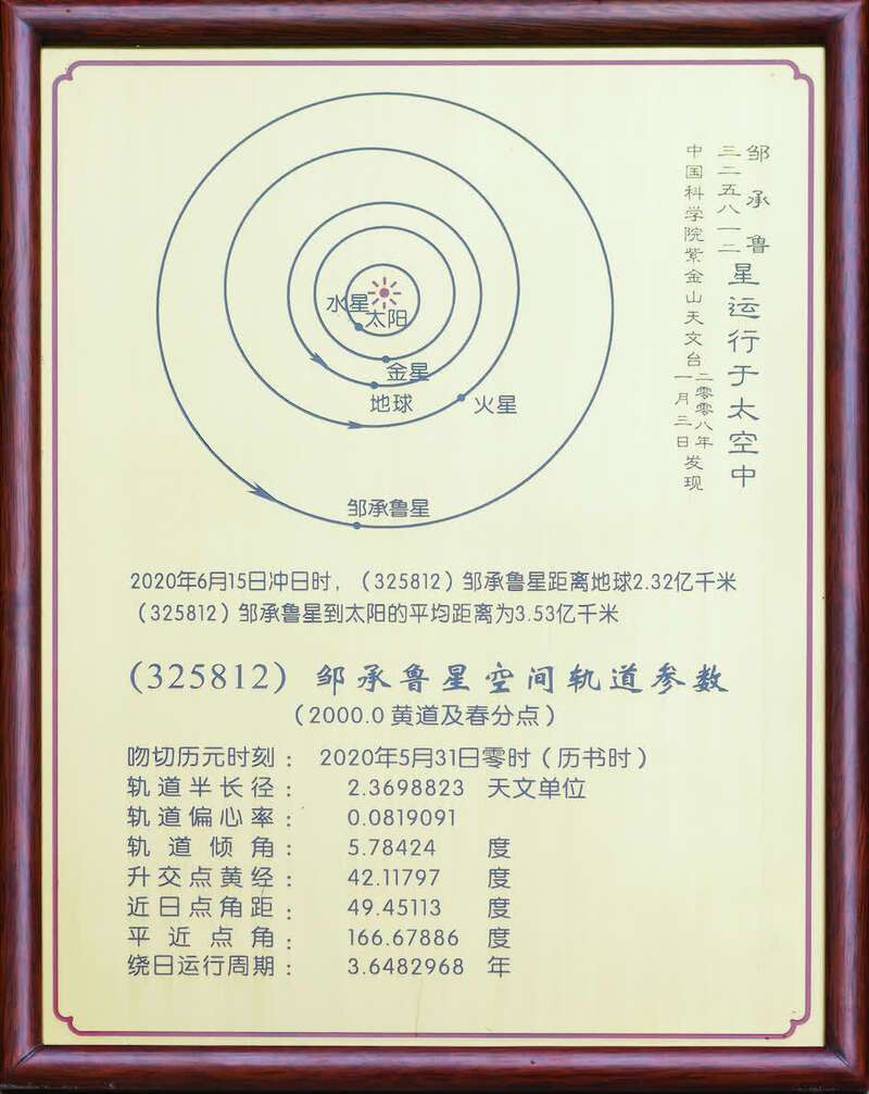 “在太阳系中,地球、火星、木星等大行星都沿着各自的轨道绕日运行。‘邹承鲁星’处在火星和木星轨道之间,将按照自己的路线和步伐绕着太阳运行,周而复始,在宇宙星空之中闪耀。”赵海斌说,“今天我们对‘邹承鲁星’的发现与命名,是该天体的研究、探测和应用的新起点。可以期待的是,随着空间探测的不断发展,未来很有可能会登上‘邹承鲁星’等小行星,去探索她的奥秘,开发她的资源,使之造福于人类。”