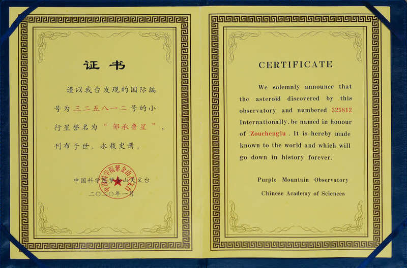 2012年4月,国际小行星中心给予该星325812号永久编号,并确认中科院紫金山天文台拥有该天体的发现命名权。2019年6月,紫金山天文台向国际天文学联合会提名将325812号小行星命名为“邹承鲁星”,于2020年1月9日正式通过国际批复。