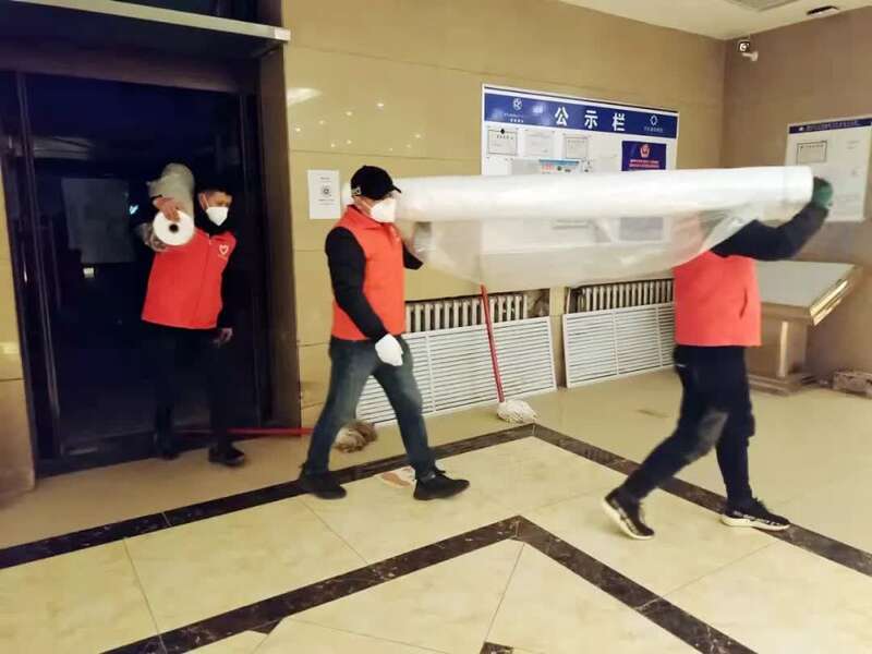 “有的隔离点没有电梯,我们必须扛着塑料薄膜爬楼梯挨层铺设,一天下来腿都软了。”陈迪告诉中青报·中青网记者,几天时间里志愿者们共布置了388个房间、453个床铺。