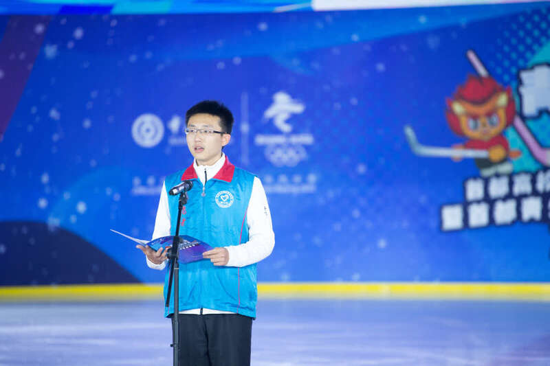 10月26日,首都高校冬奥和冬残奥志愿者誓师大会在京举行,清华大学志愿者代表余中淇在活动中发表感言。受访者供图