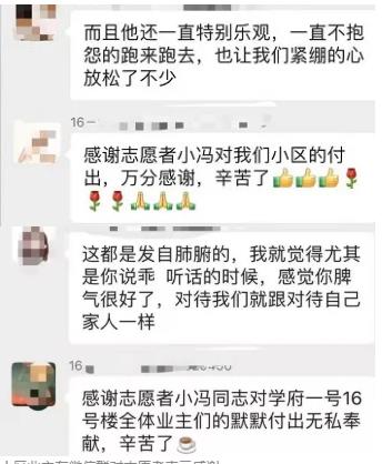 小区业主在微信群对志愿者表示感谢