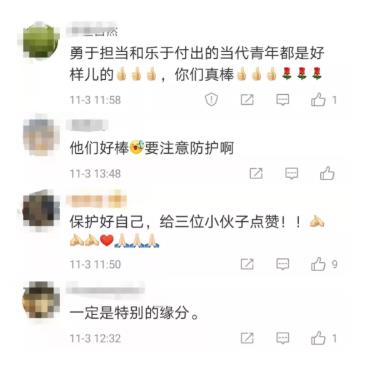 网友纷纷为三个小伙点赞