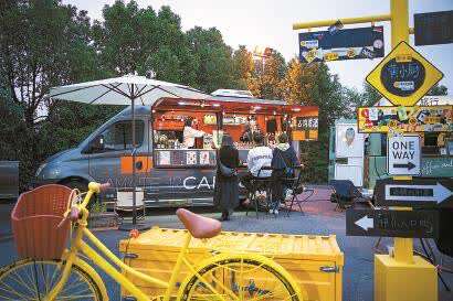此时,露天美食市集上,因连续看戏而饥肠辘辘的年轻人可以去“小厨有面”煮一碗面、“李欢喜”那儿点一杯酒,与朋友在“时光的陈酿酒”中分享观剧感受。空气中,混搭着米粉、肉饭、汉堡、砂锅、烧烤等各色气味。