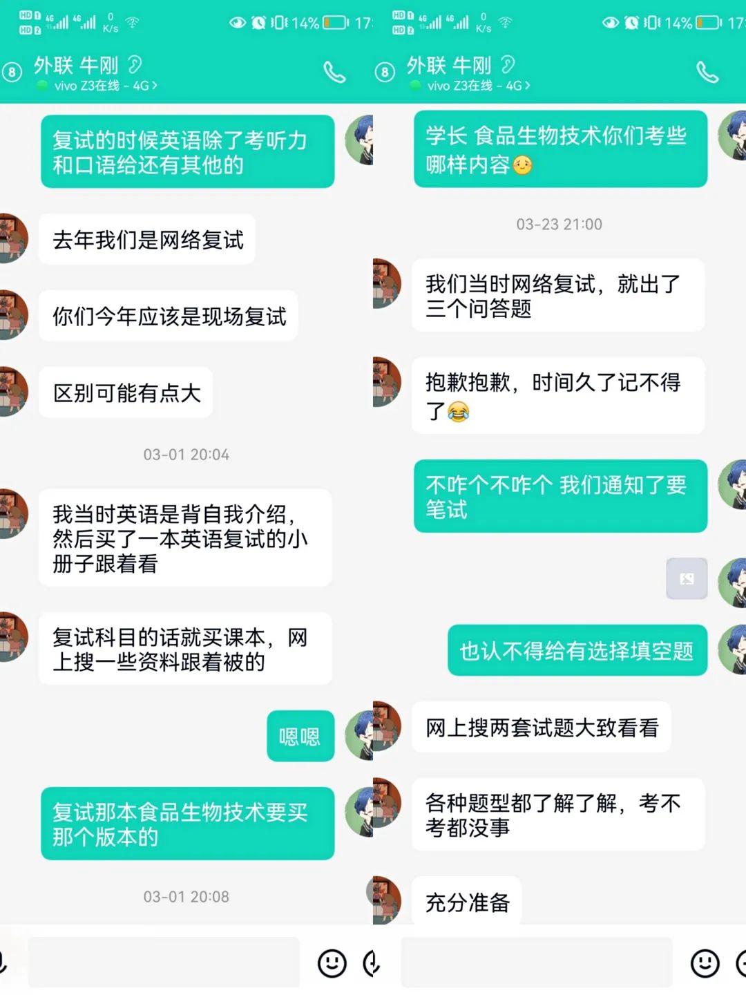 大四上学期,食品工程系组织了一场考研经验交流会,历届学长学姐从专业复习、学校信息、复习技巧和历年情况等方面进行线上一对一辅导,随时跟进学生后期复习,有必要时统一为学生购买考研网课及复习资料。同时辅导员及时掌握学生备考过程中心理变化的情况,发现问题及时进行调解。